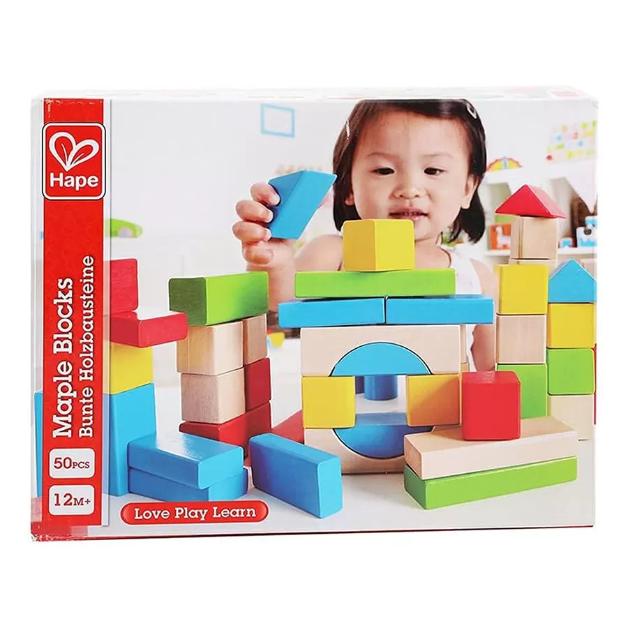 Hape – Blocs de Construction en Bois – 50 Pièces Colorées & Naturelles (12 Mois+)