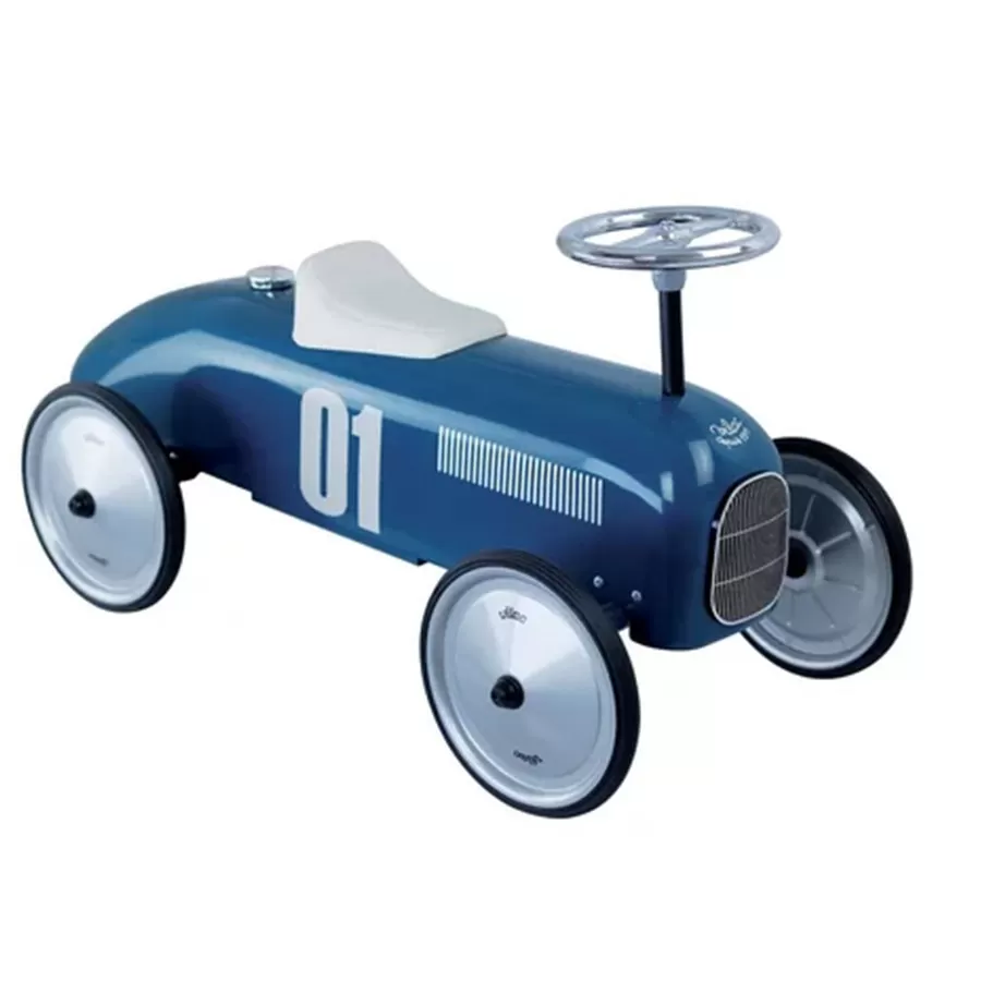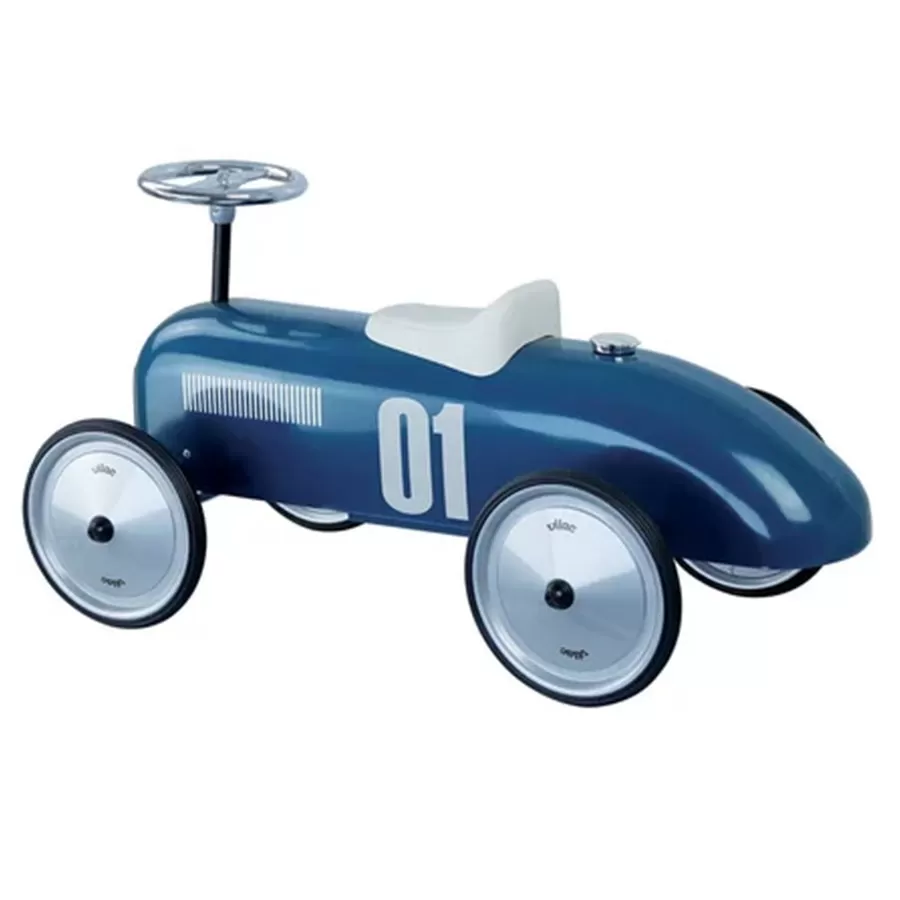Offrez à votre enfant sa première voiture de collection ! Ce porteur signé par la célèbre marque jurassienne Vilac reprend les lignes des voitures de course anciennes. C’est le cadeau idéal pour un premier anniversaire ou un baptême, aussi amusant à conduire qu’à admirer en décoration.