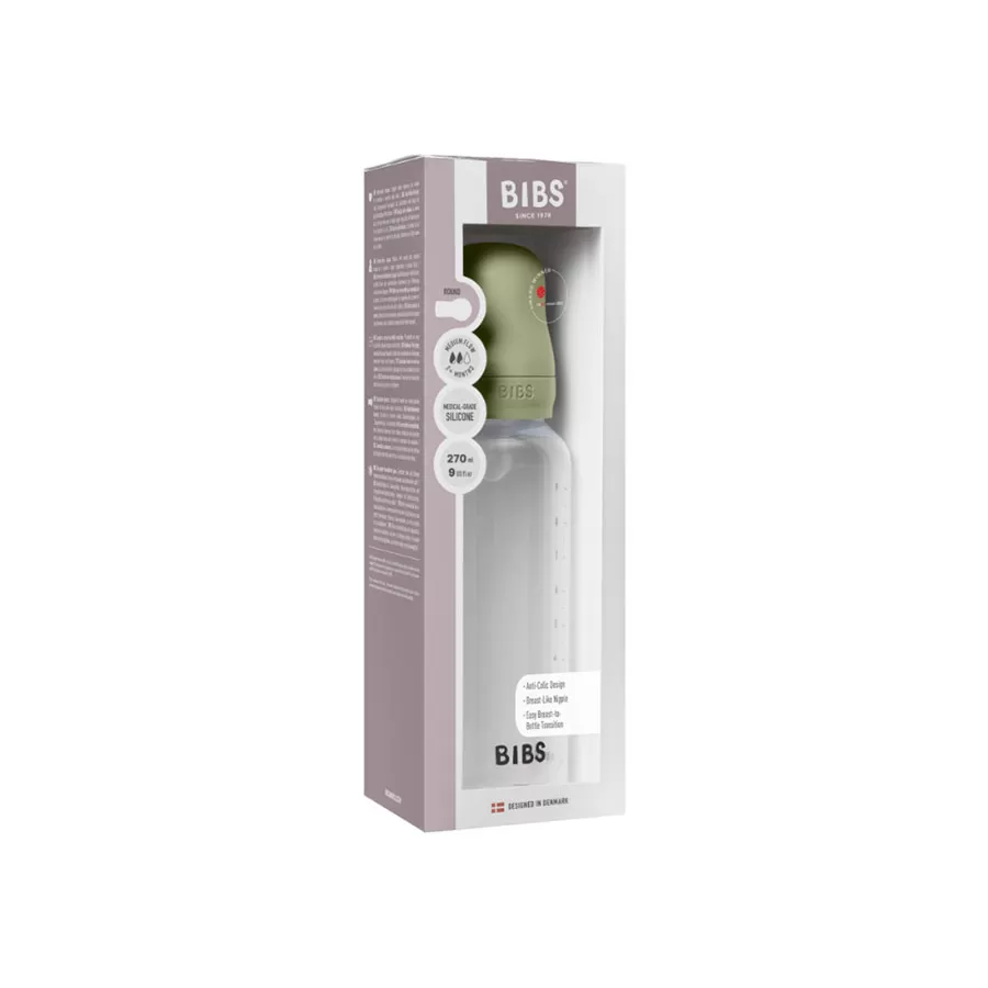 Biberon BIBS Round en Plastique (PP) 270 ml – Tétine Silicone Débit Moyen – Sauge