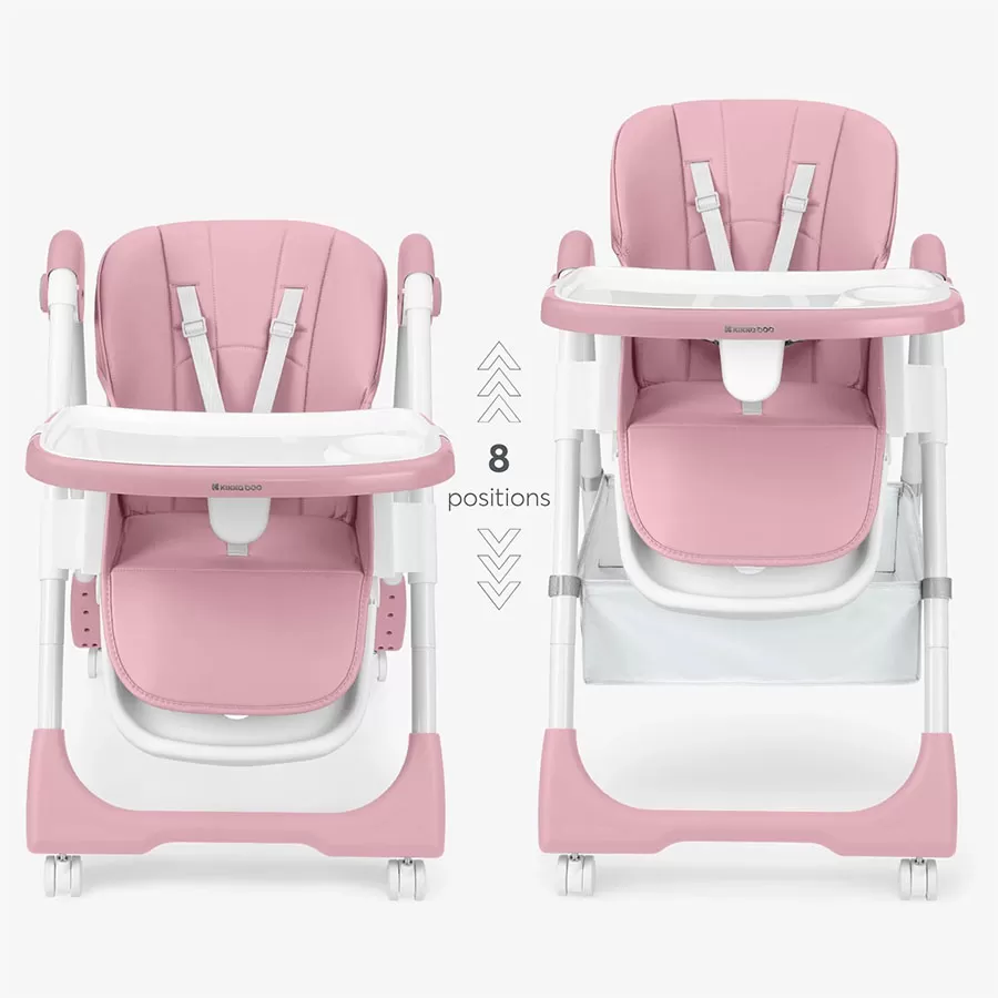 39%La Chaise Haute Kikkaboo Spicy+ (Rose) allie style et fonctionnalité. Conçue pour les enfants de 6 à 36 mois, elle est ultra-légère et pliable pour un gain de place optimal. Dotée d’un dossier inclinable, d’une hauteur réglable et d’un double plateau, elle offre un confort sur-mesure. Assise en éco-cuir facile à nettoyer.