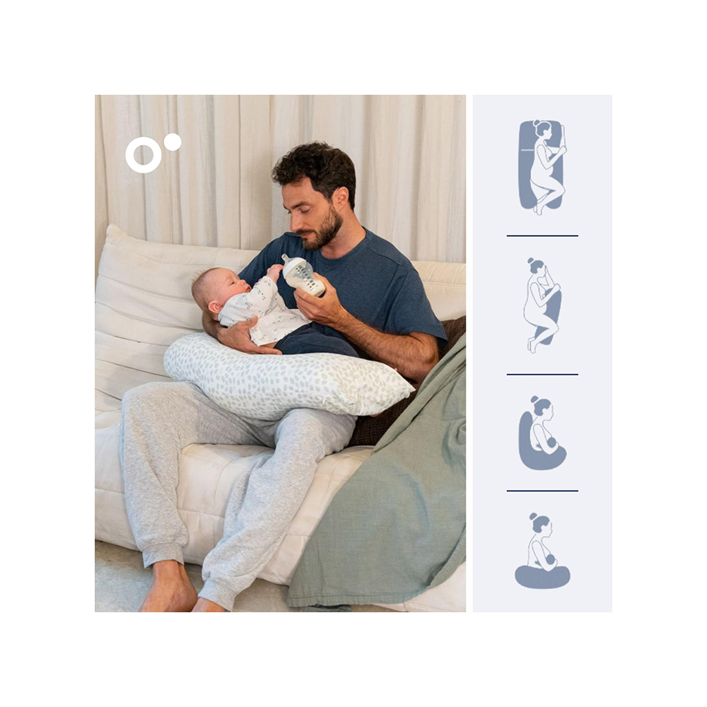 Grâce à sa partie détachable, le coussin Maxxy se transforme en coussin d’allaitement compact, idéal pour allaiter ou donner le biberon dans une position confortable, pour le parent comme pour bébé.