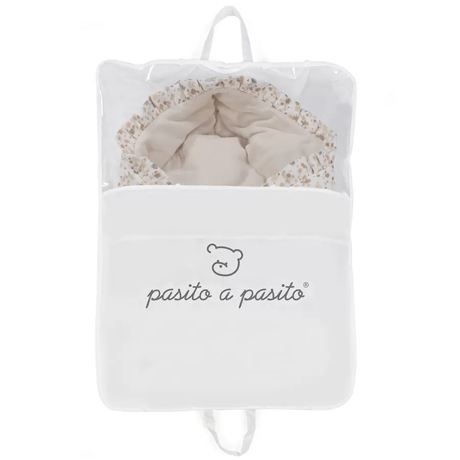 La gigoteuse Somerset avec capuche de Pasito a Pasito est une gigoteuse fabriquée dans un tissu très doux imprimé de fleurs et de bambou. Elle est idéale pour les premiers jours de votre bébé. Un complément très utile et polyvalent aux affaires de votre bébé. Préparez avec amour le nid rose de votre bébé fille/garçon et décorez ses rêves d’une touche différente partout où vous le déposez. Une gigoteuse matelassée et moelleuse qui rend le sommeil plus agréable grâce à sa forme de nid douillet. C’est un beau modèle simple et confortable qui crée un nid pour votre bébé, le gardant bien emmitouflé et protégé les jours de brise. Finitions de qualité. Toutes nos housses sont fabriquées selon les normes européennes les plus exigeantes, avec des matériaux de haute qualité, sans colorants azoïques, sans phtalates et sans substances nocives pour la santé. Tissu facile à nettoyer, nous recommandons un lavage en machine à 30º. Les produits pour bébés Pasito a Pasito ont un design très différent de tous les autres. Leurs collections se caractérisent par un travail minutieux, toujours conçu d’un point de vue pratique. Elles utilisent des matériaux de première qualité pour mettre en valeur l’élégance et l’harmonie de chacune de leurs pièces. Nos modèles sont exclusifs et d’un style incomparable, conçus pour les mères modernes qui apprécient le bon goût et les détails autant que nous. Spécifications : Matériaux : 100% coton. Taille universelle.