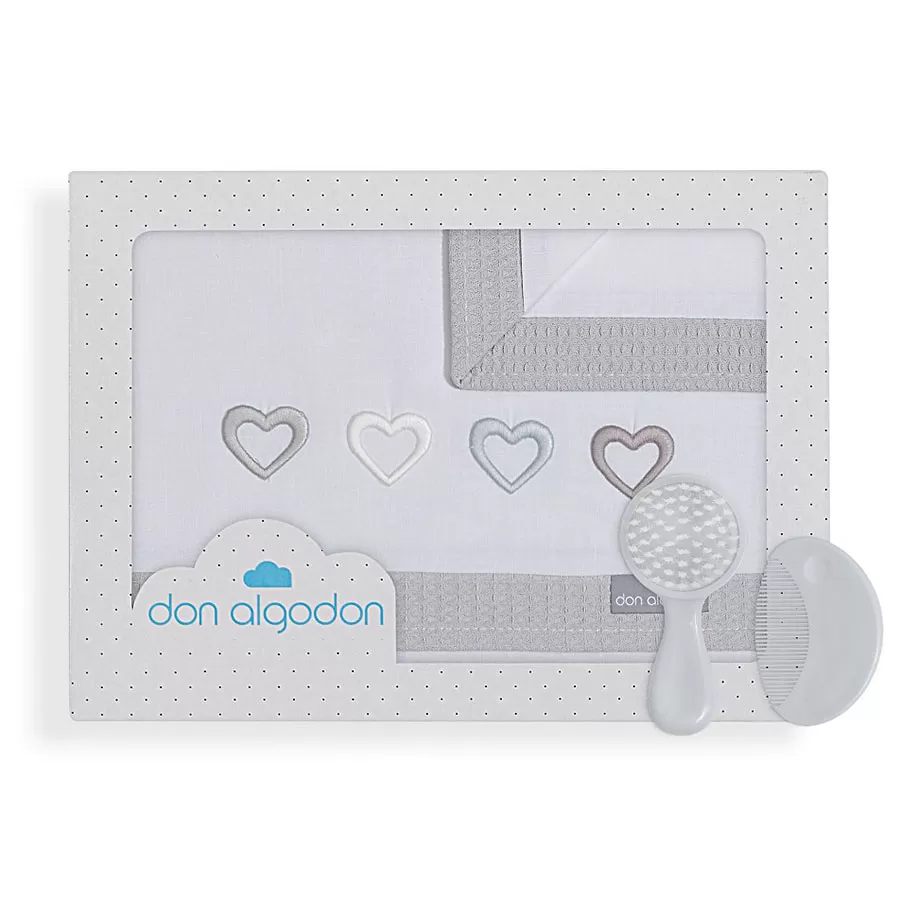Interbaby – Parure de Lit Bébé 3 Pièces « Cuore » (Cœurs) – 100% Coton – Blanc/Gris (60×120 cm)